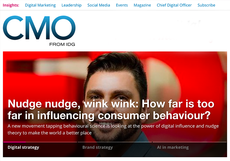 Fui capa do CMO.com.au, um famoso portal de Marketing da Austrália, com um artigo sobre #DigitalNudge, os empurrõezinhos digitais.